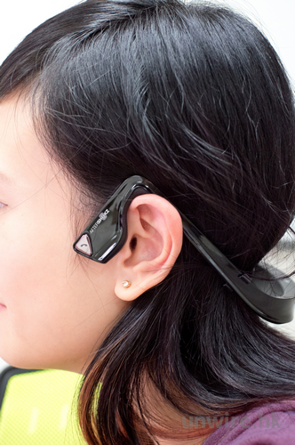 ▼ 有別於傳統入耳式耳筒設計,其左右耳筒只需貼著耳朵前方耳骨便能夠聽到聲音。