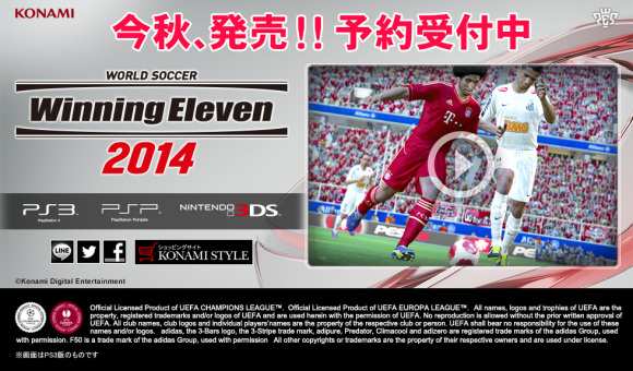 PES 2014 將會在 9 月 24 日推出,跟 FIFA 14 打對台。遊戲將會在 PC、Xbox 360、PS 3、PSP 和任天堂 3DS 上推出,至於 PS Vita 玩家們,抱歉沒你們份!