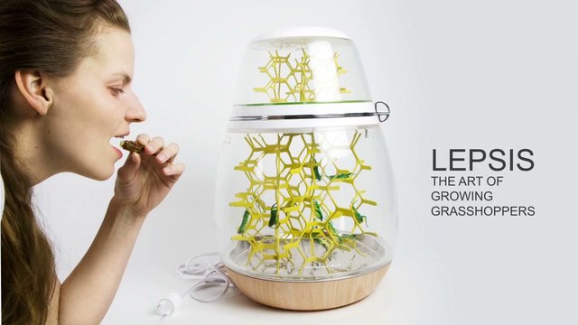 由於昆蟲擁有豐富蛋白質,有人鼓吹減少食肉改食蟲,因為昆蟲比傳統肉類碳排放較少,對環境的傷害亦較低。設計師 Mansour Ourasanah 就設計了一部自家養蟲機 Lepis,更獲提名設計大獎。