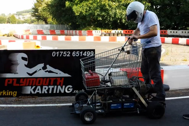 小朋友走到超級市場最喜愛的就是「乘搭」購物車,企到後方不斷快速前進,就像到遊樂場般玩樂帶來快感。1 名英國工匠就以將此童年玩意變成 1 部超級購物車,可在路上以每小時 70 公里行走,打破了購物車的速度記錄。