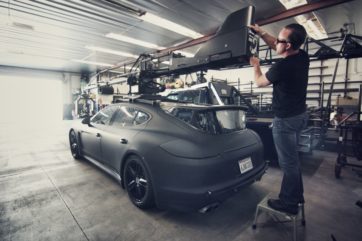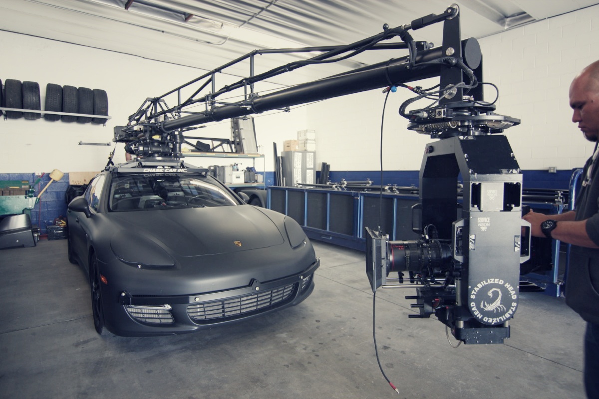 要拍攝電影飛車鏡頭,一部拍攝專用的車當然不可少,這部車需要安全、耐用、有足夠的馬力和速度,同時能夠在不同路面狀況時提供穩定的拍攝環境,最後當然要承受得起在車身安裝 850 磅的特殊拍攝裝備。擁有不少大片拍攝經驗的 Chase Car Inc 就相中了 Porsche Panamera。