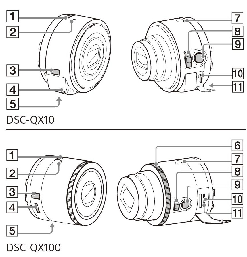 剛流出的 Sony QX10 及 Qx100 的大概規格及功能已經<在此>跟大家提及過,基本上將 RX100 II 的 WX150 兩部相機的機身簡化成鏡頭,只利用手機及平板屏幕去操控。既然沒有了機身,只有鏡頭下的操控及按鍵擺放又如何?流出的說明書相信以為大家解釋一切,大家可以看看以下圖片。
