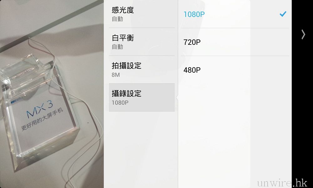▲ 影相介面與 MX2 相差不遠,可調較 ISO 值及白平衡,還有事後可加入特效等等。不過相比 HTC One 等新機種拍攝功能就較少。