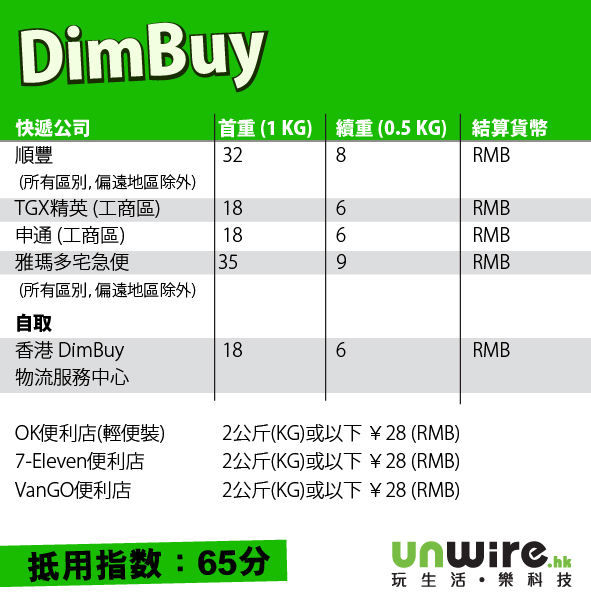 DimBuy 在香港可說是較出名,亦與一些有名的速遞公司合作,如 TGX、雅瑪多宅急便等。小編覺得最方便是與全港 3 間大型便利店合作,不用特地坐車去自取點收件。不過 DimBuy 也出名條款多,價錢也較貴,例如選擇便利店取貨的要在 3 天內提取,否則貨物會被退回 DimBuy 旺角物流服務中心,還會加收 $60 轉運手續費,使用前記得看清楚條款喔!