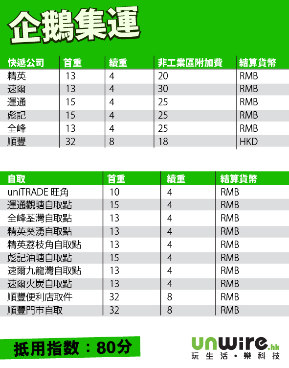 企鵝集運是一間較新的淘寶集運公司,收費都算便宜,速遞公司和門市的選擇也算多。當中旺角的自取店反而最平,算是很方便喔。