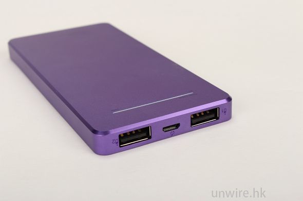 它的電容量為 6500mAh,有雙 USB 輸出 (提供 2100mA 輸出可為手機怏速充電,甚至為平板充電) 和電量指示燈,隨充電器配送 Micro USB Cable、30-pin 連接器、及小袋 1 個,用 iPhone 5 的朋友就要自備 Lightning 充電線啦!值得一提的是它有黑灰、銀白、彩藍、粉紅及幻紫 5 種顏色可選擇,相信可照顧到不同喜好的用家。