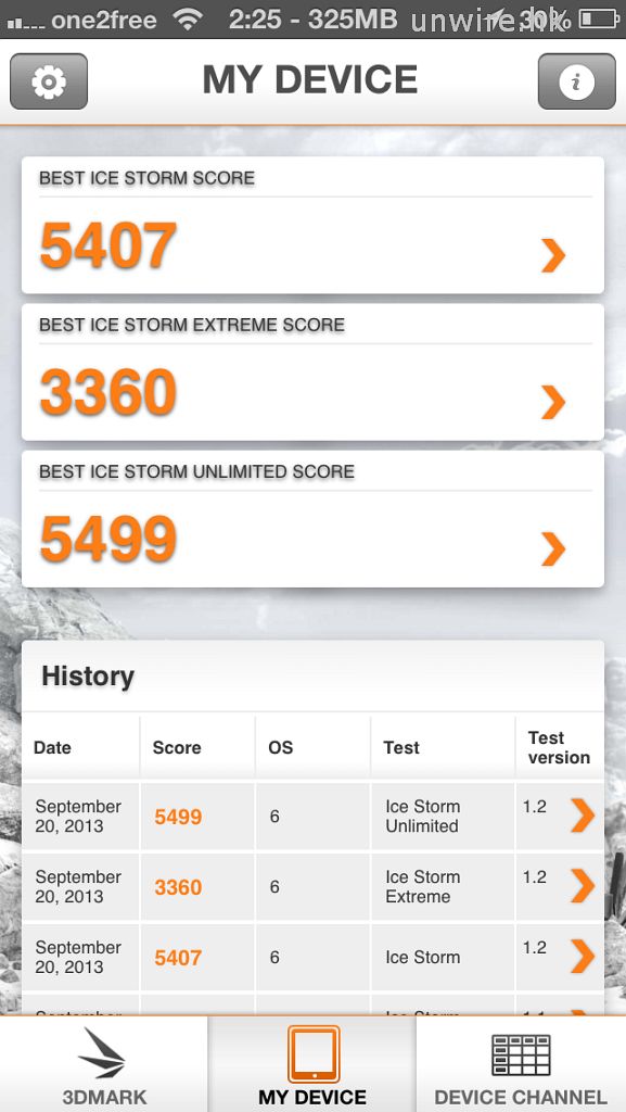 ▲3D Mark:iPhone 5 – Ice Storm Extreme(3,360 分)/ Ice Storm Unlimited(5,499 分); iPhone 5s – Ice Storm Extreme(9,719 分)/ Ice Storm Unlimited(13,804 分)。