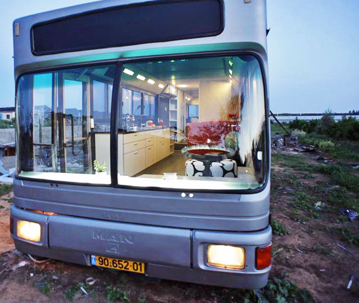 Shaul 和 Morevski 在廢車場購買了一部 MAN 舊式單層巴士,然後找來設計師 Drori 協助,利用原來的大玻璃車窗、上落客車門、和圓形的輪拱,間隔出不同生活空間。一部原本變成廢鐵的巴士,被他們改裝成一個擁有浴室、睡房、儲物櫃、廚房、全車舒適冷氣的住宅。