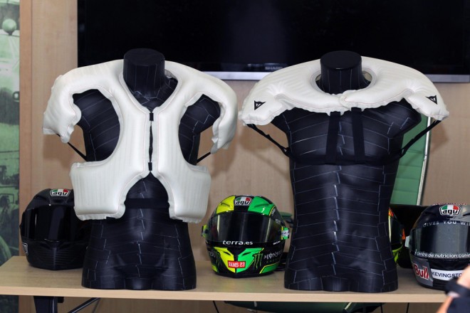 Airbag 不是只有汽車才擁有,由 Dainese 開發的 D-air Racing Thorax 賽車服,讓電單車車手在遇到意外時,安全氣袋會自動充氣,提供保護予頸部、膊頭、喉部和胸口。這套賽車用安全氣袋已經在 Moto3 賽事中由車手 Luis Salom 進行測試,亦取得了安全認證。Dainese 表示將會於明年推出平民版安全氣袋 D-air Street,供一般鐵騎士使用。
