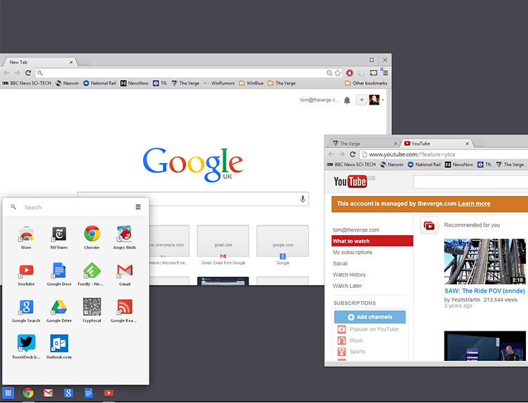 Windows 8.1 迫不得以需要從回傳統的「開始」介面,証明大家對 Windows 的操作習慣已「深入民心」。一向視 Microsoft 為死敵的 Google,希望可以乘虛而入吸引這批對 Windows 不滿的用戶。在最新的 Chrome 瀏覽器上,Google 竟然將 Chrome OS 的部分功能引入,試圖以「洗腦」方式去改變大家的操作體驗。