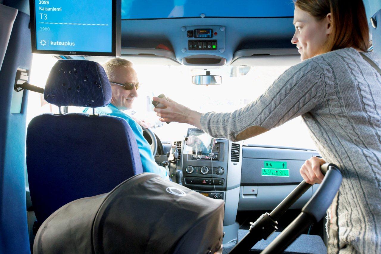有別於一般巴士服務,這個名叫 Kutsuplus 的服務,收費比巴士貴,但遠較的士便宜。只要在手機設定路線,系統會安排巴士到指定巴士站點接載乘客,如果選擇與他人一起乘搭,系統亦會自動將其他乘客的路線整合,制訂出合適的路線。每部巴士可載 9 人和 1 部 BB 車,當越多人同時乘搭,車費就會越平,有點像搭「泥猛的」。