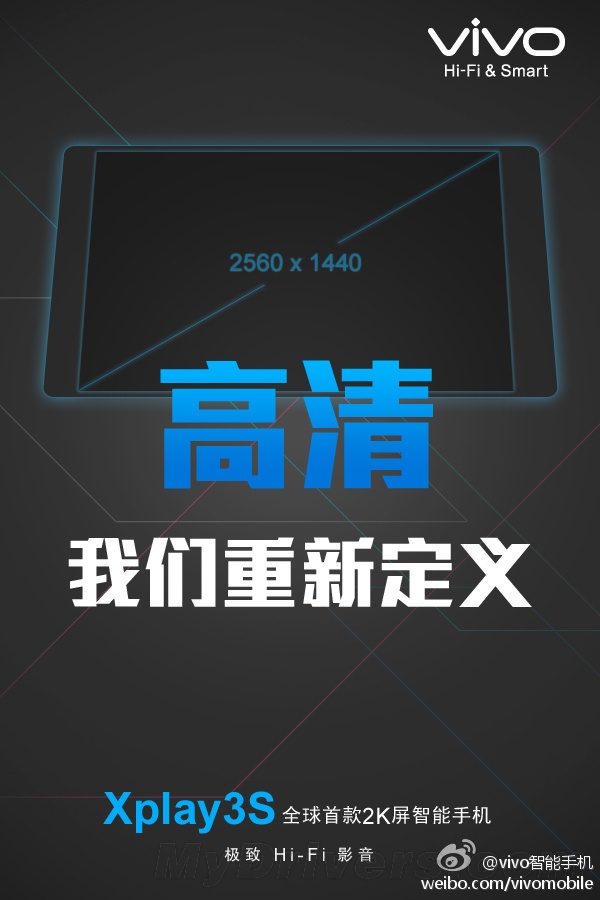 vivo 在微博中發布的資料中可以見到,「高清我們重新定義」,官方的消息指出,Xplay 3S 將會配備 2560 x 1440 屏幕,搭載 Snapdragon 800 SoC、TD-LTE 及 FDD-LTE 雙 4G 網絡等高規格,比起目前任何牌子手機更為出色?現時除了平板之外,暫時未有任何手機提供 2560 x 1440 解像度屏幕,早前 LG 就展示了 5.5 吋 AH-IPS 屏幕,就提供了相同的解像度,經計算後密度高達 538 ppi;而 Sharp 的 IGZO 屏幕則為 6.1 吋,密度為 498 ppi,但兩者均尚未量產,究竟 vivo Xplay 3S 會採用那一款屏幕,屏幕尺寸將會可知一切。預計此款手機將於今年內推出,但相信明年將會有更多廠商推出相類似產品。