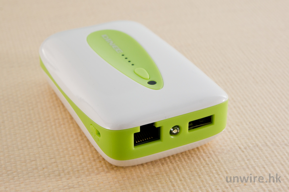 ▲ 備有 100M 網絡接頭,方便在酒店內將寬頻分享,另外也具備 USB 接頭,可安裝 3G 手指或 USB 手指,作流動寬頻分享或儲存。另外也見到中間的 LED 燈,按下開關制約 2 秒便可使用。