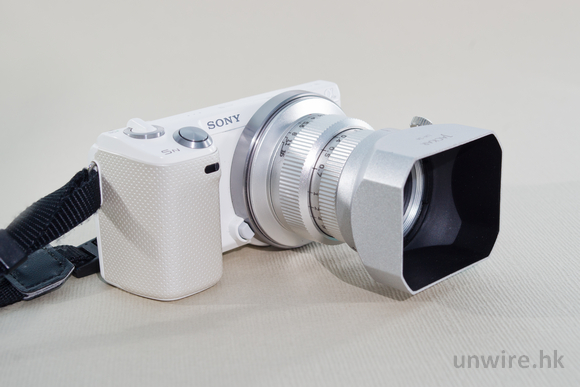 ▲ 安裝到小編的 NEX-5N 上,可見銀色鏡身與白色機身十分相襯。