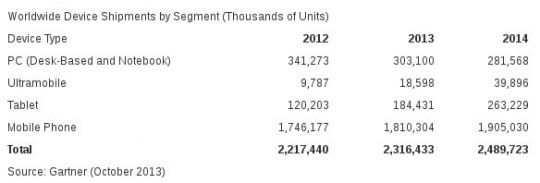 市場調查機構 Gartner 日前便將所統計的數據資料公開,為各類電子產品的出貨量作出預測。Gartner 的統計包括了 PC (Destkop 及 Notebook)、Ultramobile (即新興的二合一變形平板)、平板及智能手機產品,也是目前大家常接觸到的運算裝置。雖然 2013 年還未過去,但已預計到今年平板的市場增長約 53.4%,數量達到 1.84 億左右,比例約智能手機的 1/10。而增長率最高的是 Ultramobile,如 Asus 的變形平板電腦或 Microsoft Surface 等,可以變身成平板或 Ultrabook 般使用,系統亦可以是 Android 或 Windows。而大家常用的電腦出貨量就較上年下降了約 8.4%,升級意慾繼續低迷。