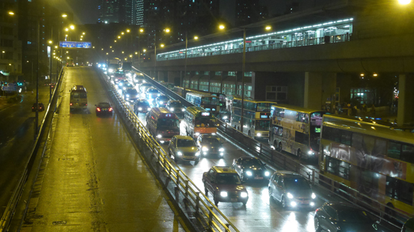 ▲ 寬容度一般,自動白平衡更偏向車頭燈的一邊,所以見到街燈有點偏綠。(ISO 3200 f/5.4 1/30s AWB)