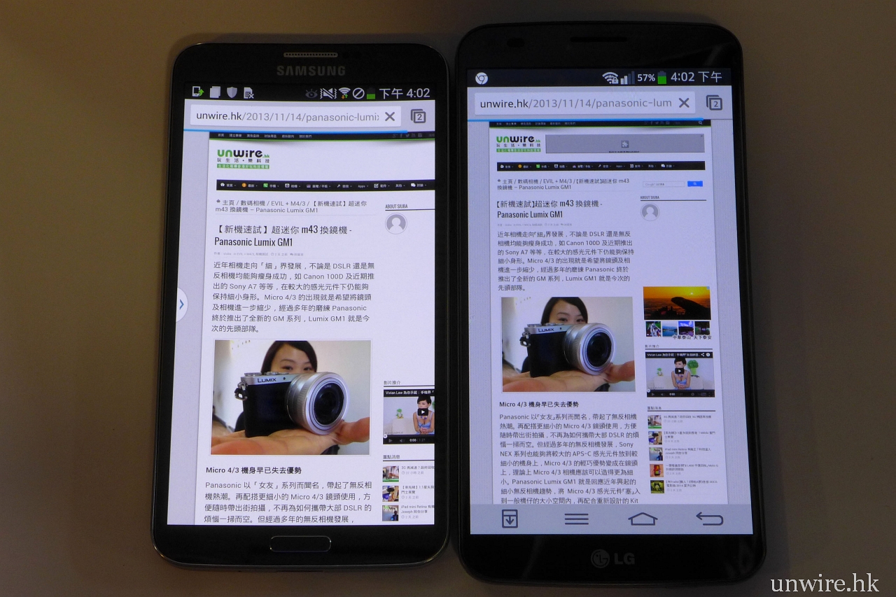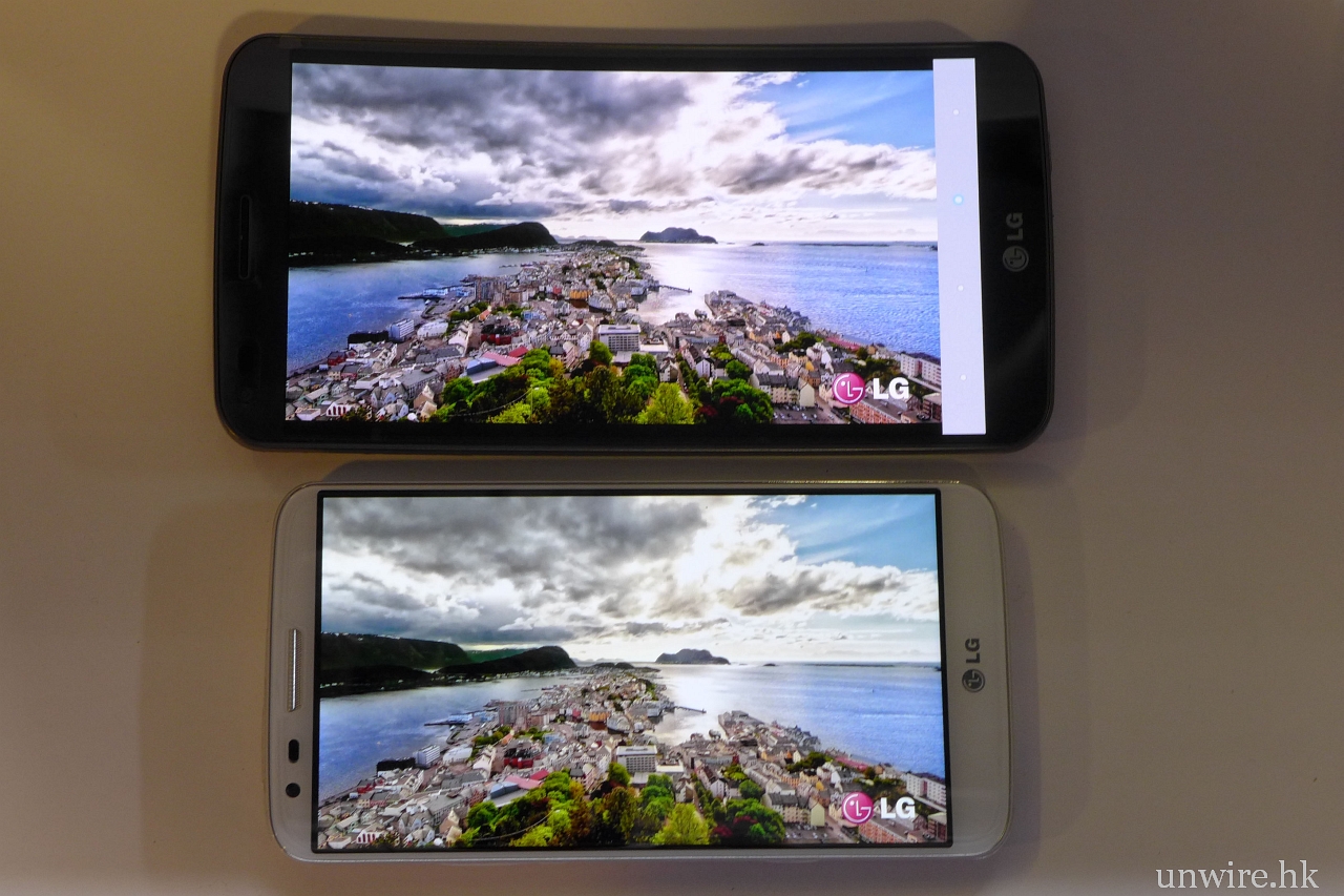 ▲ 跟平面屏幕的 G2 相比,G Flex 屏幕感覺更闊,特別是四角位置最為明顯,而優點是可以睇片時更集中熒幕中心。