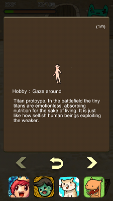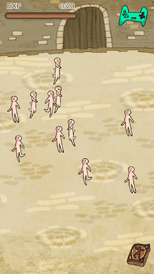 這個遊戲叫 “Titan Evolution Party”,你可以操控當中一個人,其他人好像漫無目的一樣,按一下他們,你就可以進擊他們,再按一下就可以吸收他們的屍首,提升右上角的 EXP,儲滿後就會進化,進化一次後就有頭髮,再進化就已經變得頗為巨型,面目猙獰。
