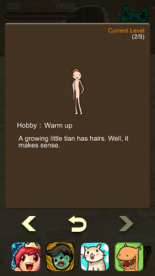 小妹未玩到最後,巨人最後會變成怪物一般,大家玩的時候要有點耐性,因為「食物」要等一下先出現,所以想見到巨人的最終形態要慢慢玩啦!