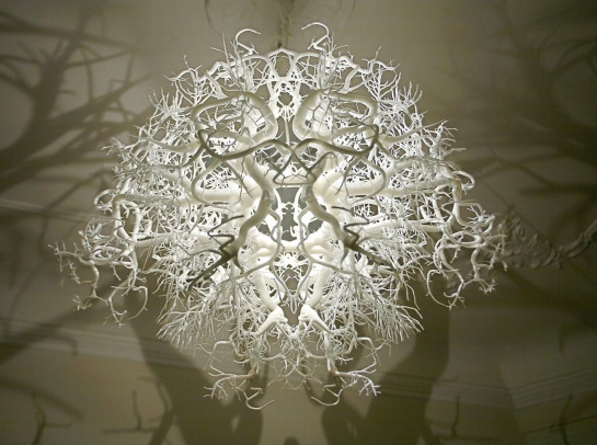 燈亮起後,會在牆上造成彎曲多刺的樹藤和樹幹的影子,影子看起來像困在一個令人毛骨悚然的樹林,感覺可怕又頗震撼的,彷如置身童話故事中。這是藝術家 Thyra Hilden 和 Pio Diaz 的作品,靈感源自 Darwinist Ernst Haeckel 的畫,創作者形容它為一件藝術品,光源被以小型雕塑出的密集混亂的樹和根包圍,森林由它的水平中心軸反映出來,360 度包圍光源,從而造成一個一個如真實世界的影像。有興趣想了解它的詳情,可到以下網站看看。