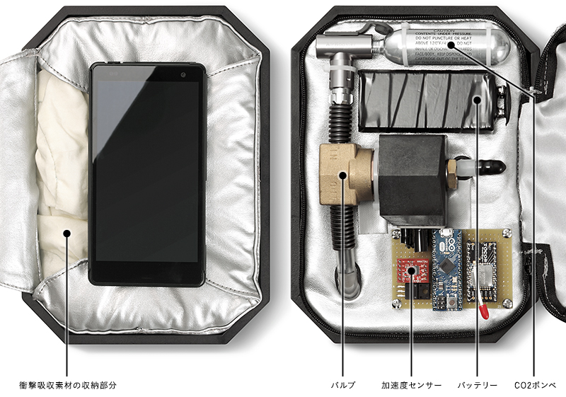 汽車為乘客提供安全氣袋相信並不陌生,但本田汽車最近卻研發出專為手機提供保護的 Airbag 保護殼,只要手機感到墜落時,安全氣袋就會在 0.1 秒內充氣膨脹,承受跌落地面的衝擊,保護手機免受傷害。