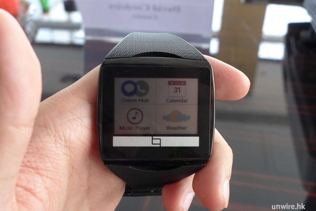 ▲ 錶內使用 4 格顯示介面,主要選項有通話方塊、日曆、音樂播放器、天氣及股票等功能。