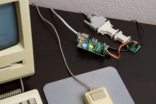 要令 Mac Plus 可以連上 Internet,Keacher 就嘗試了用轉接方式將善用其 SCSI 介面,透過多項的轉接器方式再連到 Raspberry Pi 從而得到網絡接頭,並以 19Kbps 的速度連線成功,較現時的上網速度慢上數以千倍。當然 Mac Plus 內的上網功能亦有限,最後只能以 MacWeb 簡單地上網,真的不得不佩服 Keacher 兄的耐性。