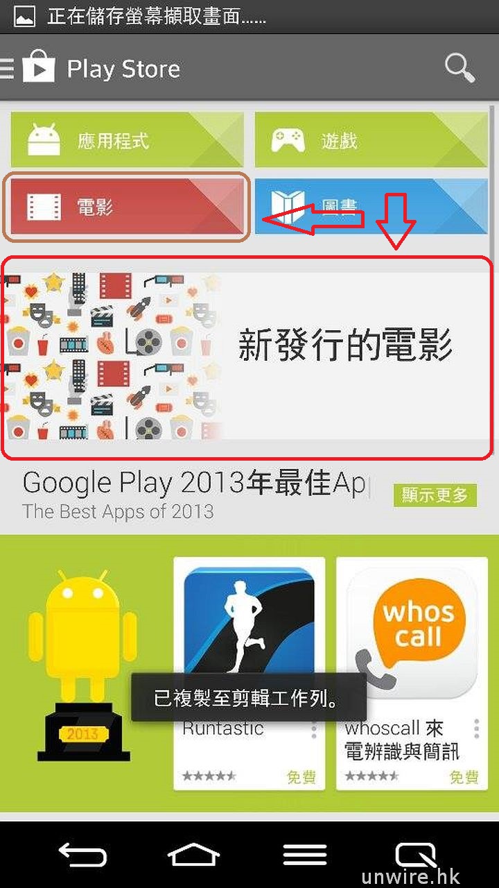 ▲ Step 1: 今日起大家登錄 Google Play Store 會看到圖書旁邊多了電影選項。