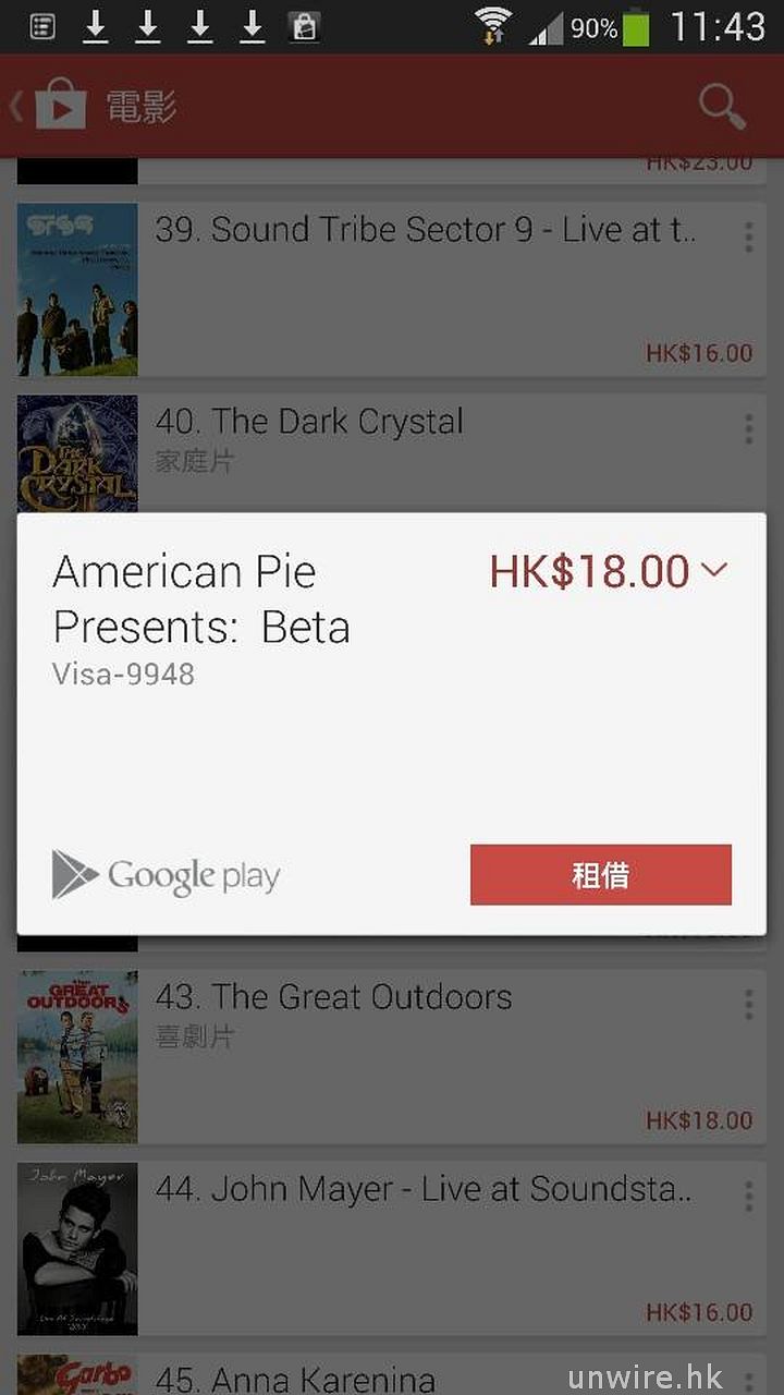 Google Play 今日起加入 租 / 買電影服務,條款上租電影,用家可在租用期內無限次播放,但播放一刻開始計 48 小時後就會過期,而購買就沒有播放限制。