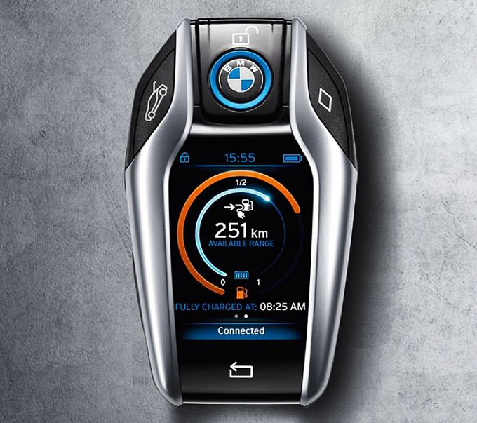 BMW 的 i 系列外形設計充滿未來感,就連車匙都是一樣,將於明年開賣的 BMW i8 Plug-in hybrid 超級跑車,它的車匙驟眼看來,會讓人以為是一部 Smartphone。 BMW i8 的車匙擁有高清屏幕,可以顯示汽車的充電狀況,包括充電時間、預算可以行駛的距離等。除了這些資料,車匙當然具有遙控開門、鎖門,打開行李箱等基本功能;車匙亦預留了一個按鈕供車主自訂功能。預算在明年首季開賣的 BMW i8 售價約 106 萬港元。 來源:likecool