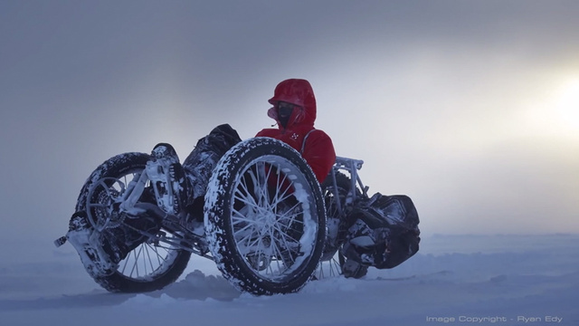 由英國設計工作室 Inspired Cycle Enginerring(ICE)設計的三輪單車,有 3 條闊的輪胎,提供穩定性。這部特製的單車以飛機級數的金屬物料製造,曾經在西伯利亞、挪威、冰島和工業用的冷藏庫中進行測試,相信能夠抵禦南極的惡劣天氣。