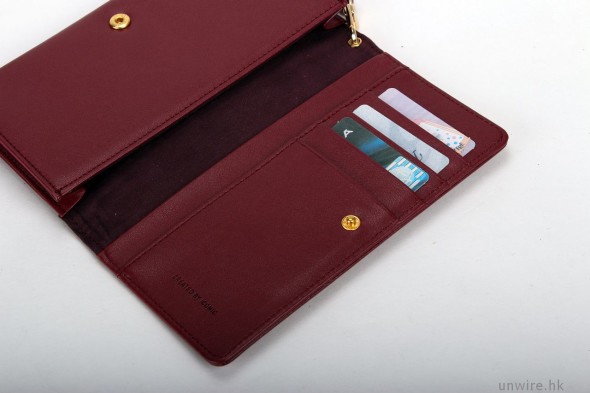 銀包左側內袋可以收藏大至 6.5 吋的智能手機,即使是巨無霸級的 Galaxy Note 3 亦絕對沒有問題。