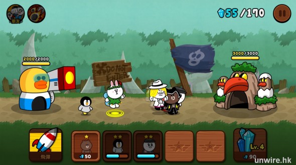 LINE 遊戲又有新作,熊大、饅頭人、兔兔、詹姆士,大家熟悉的 LINE 公仔搖身一變成為 5 人戰隊,要去拯救被壞人捉走的小黃鴨莎莉。今次遊戲玩傳統的橫向打塔攻防戰,加入扭蛋、升寵、LINE 好友協戰、Candy Crash 式版圖互相鬥快等元素,傳統得來卻又不太傳統。遊戲耐玩程度很高,看來今月解悶遊戲「有著落」。