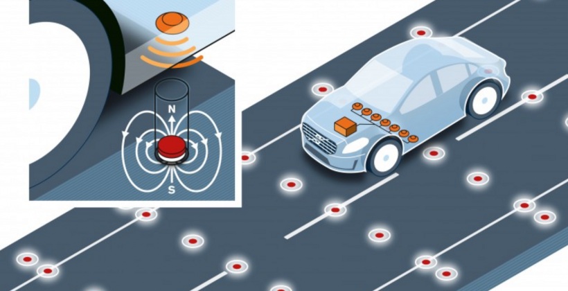 自動駕駛汽車技術研發了多年,要解決將汽車行駛在行車線內一直是個難題。Volvo 最近就得到瑞典交通部門的協助,測試一種新的技術。自動駕駛汽車將會有磁石感應裝置,可以探測埋藏在路面 200mm 下磁石的位置,從而將汽車行駛在指定行車線內。