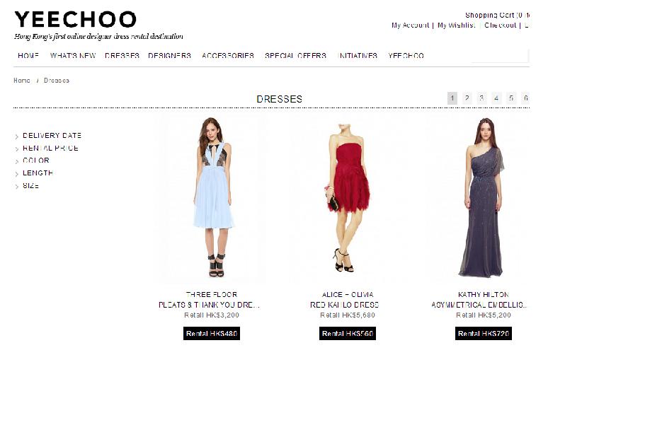 ▲ Yeechoo 的頁面像一般賣衫的網站,不過只提供租裙的服務,大家想租裙先在頁面右上方的 “My account” 按 create account 開一個個人帳戶。