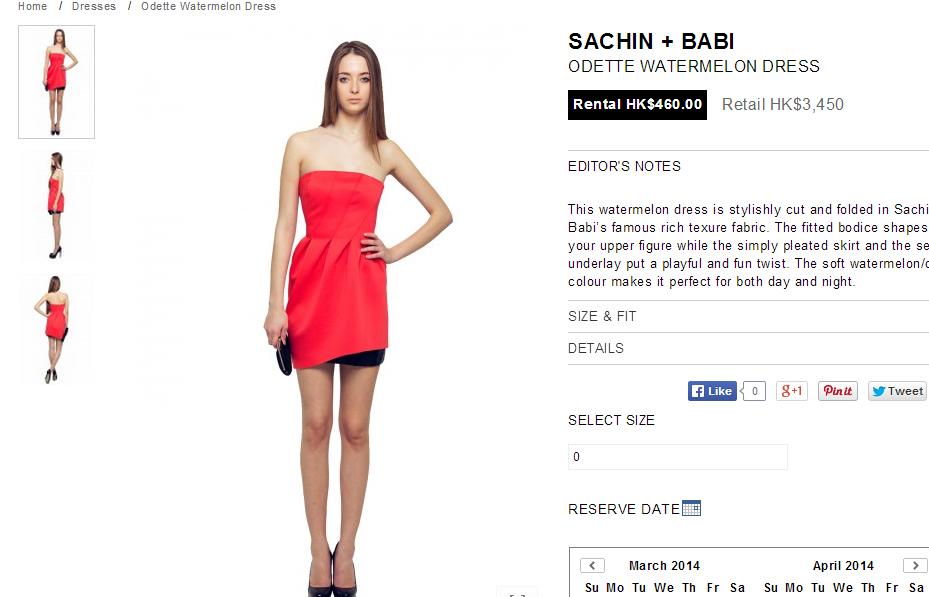▲ 完成後可以開始挑選適合自己的裙,睇中了就 click 一下裙看看詳情,選擇適合的 size 及租裙日期,租借期為 4 日,完成就按 “rent now”。