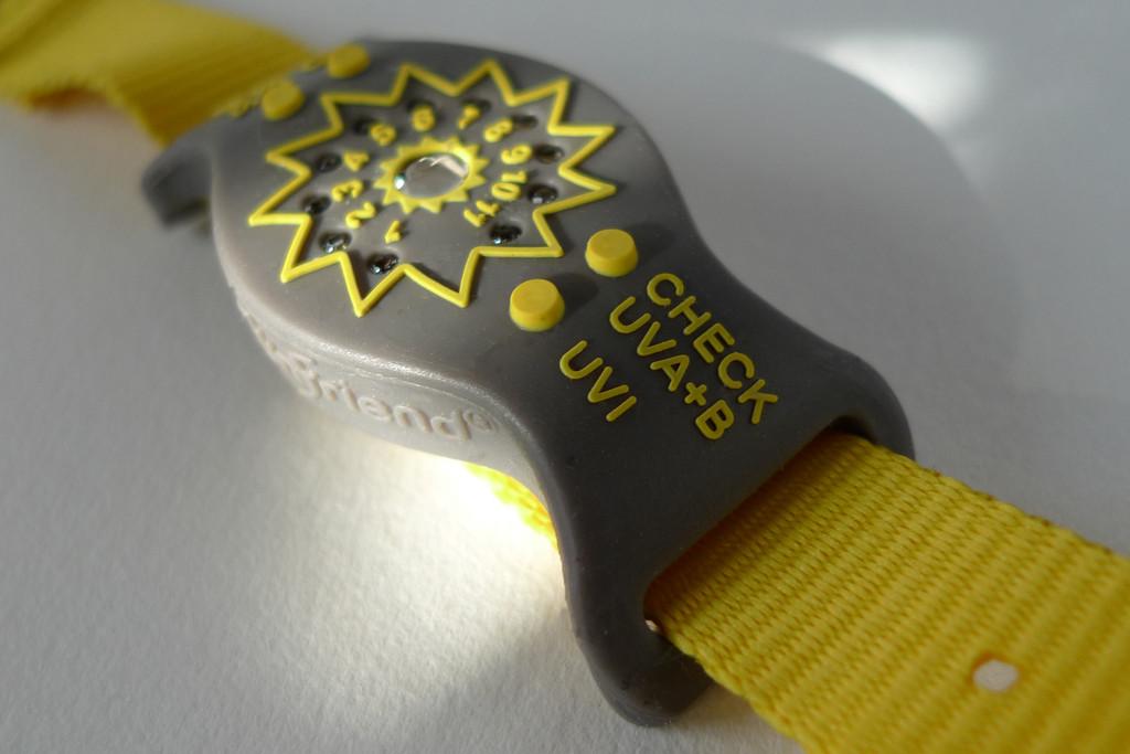 開發者受到美國太空總署的技術啟發,設計出既小型輕巧,又省電的防水紫外線偵測器手帶 SunFriend。只要設定好皮膚的敏感程度,然後將 SunFriend 戴在手腕上,當紫外線接近臨界點,SunFriend 中間的 LED 就會閃鑠提醒,令用戶避免因為吸收太多 UV/A 或 UV/B 而受傷。SunFriend 有不同顏色,每個售價 49.99美元(約 388 港元)。