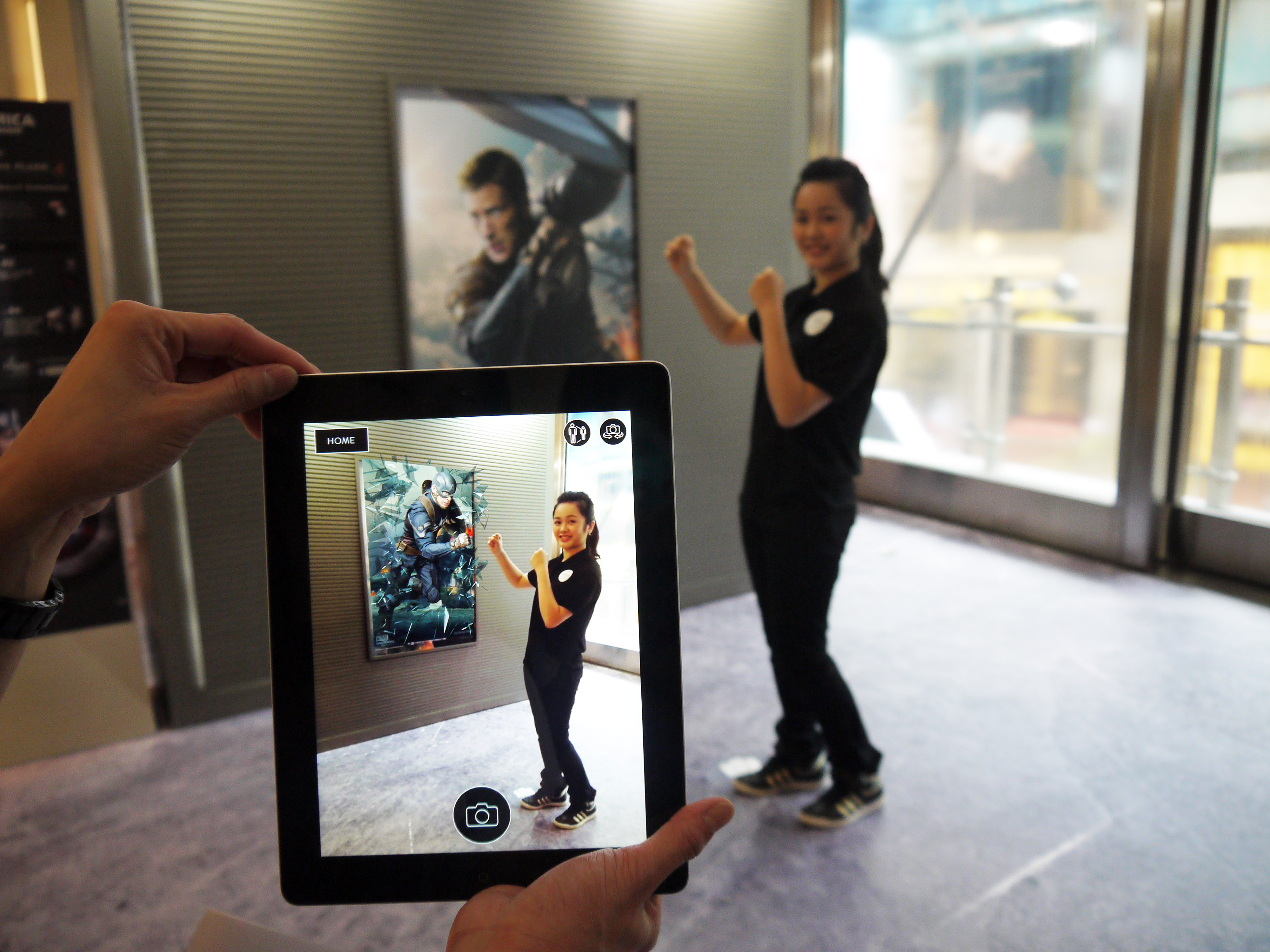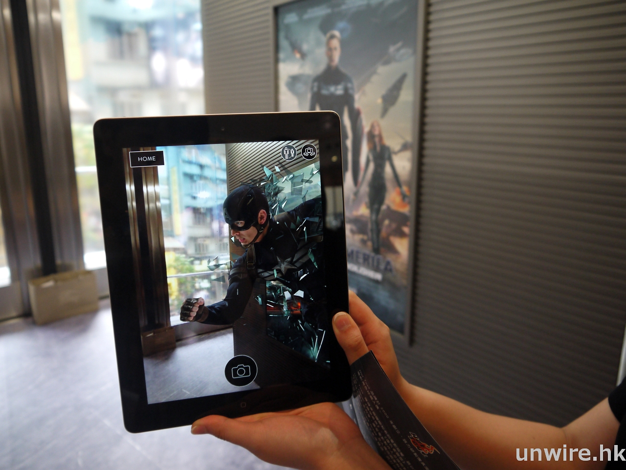 大家可下載 iOS / Android 的「Captain America Experience」 App,只要對準場內的 Poster,美國隊長就會彈出來,大家可一起合照喔!