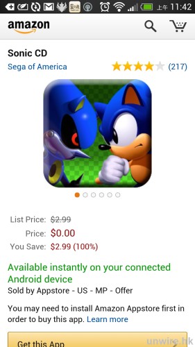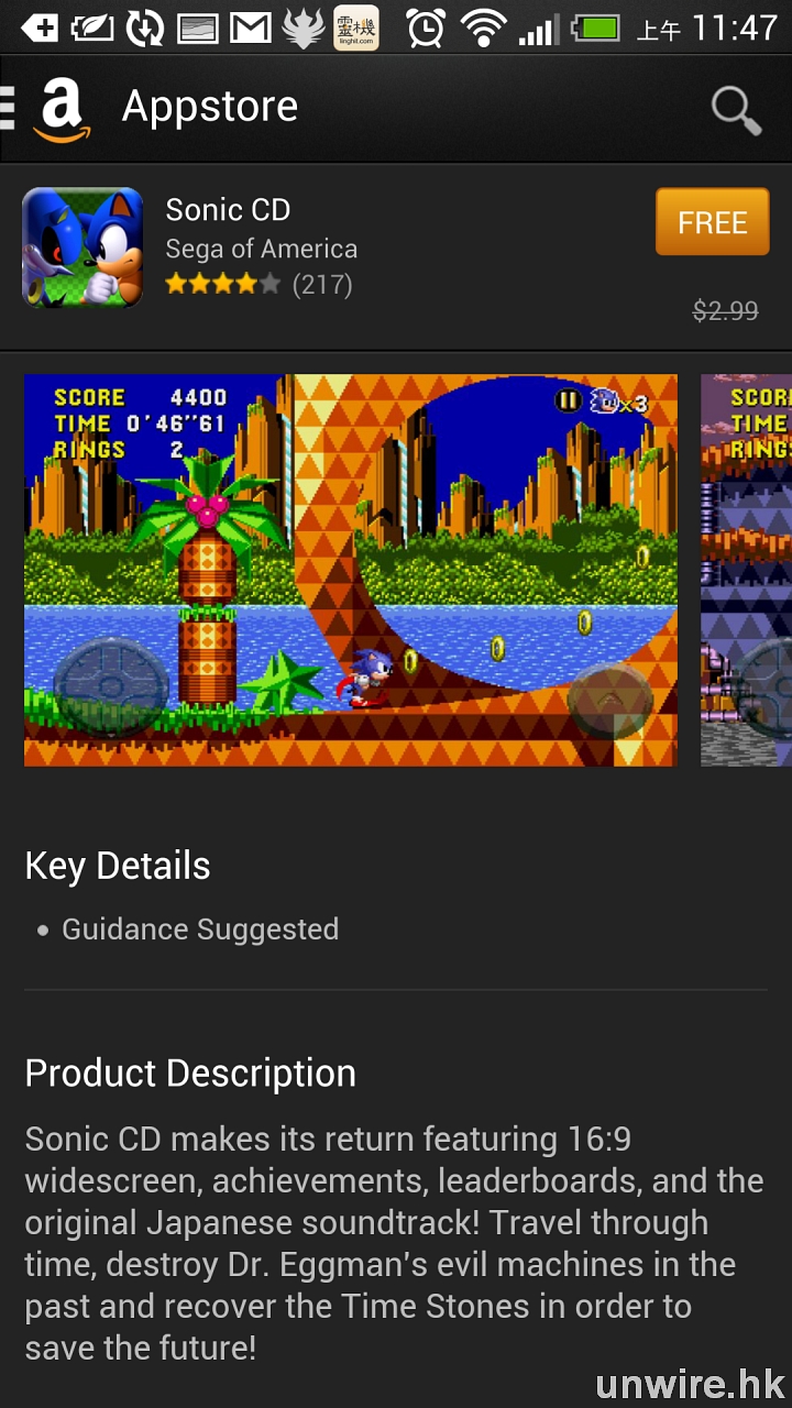 MEGA CD 或者 SEGA CD,相信很多讀者都未玩過,不過當年的超音鼠已經十分好玩。今日 Amazon App 提供限時免費優惠,原價 US$2.99 的 Sonic CD,只需使用 Amazon App Store 就可免費下載!