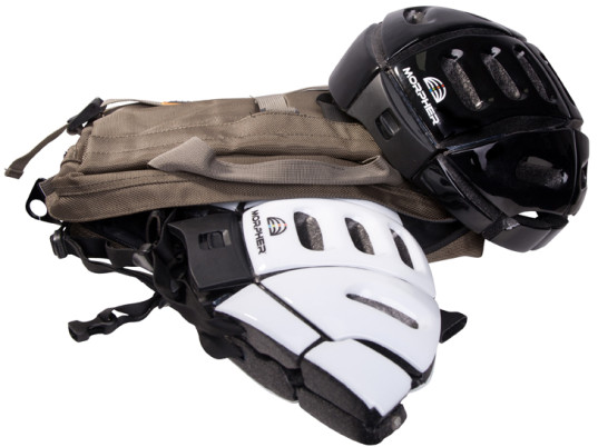 Morpher 摺合後厚度約 3.55cm,可以收藏在背囊或電腦袋內。Morpher 所用的物料是塑膠和發泡膠,用料和安全程度均與一般單車頭盔無異。產品已經取得了歐洲的安全認證,並且會在夏天符合美國方面的標準。廠方希望在稍後時間正式推出 Morpher,並且進一步將產品延伸到滑雪、滑板和冰球運動之上。
