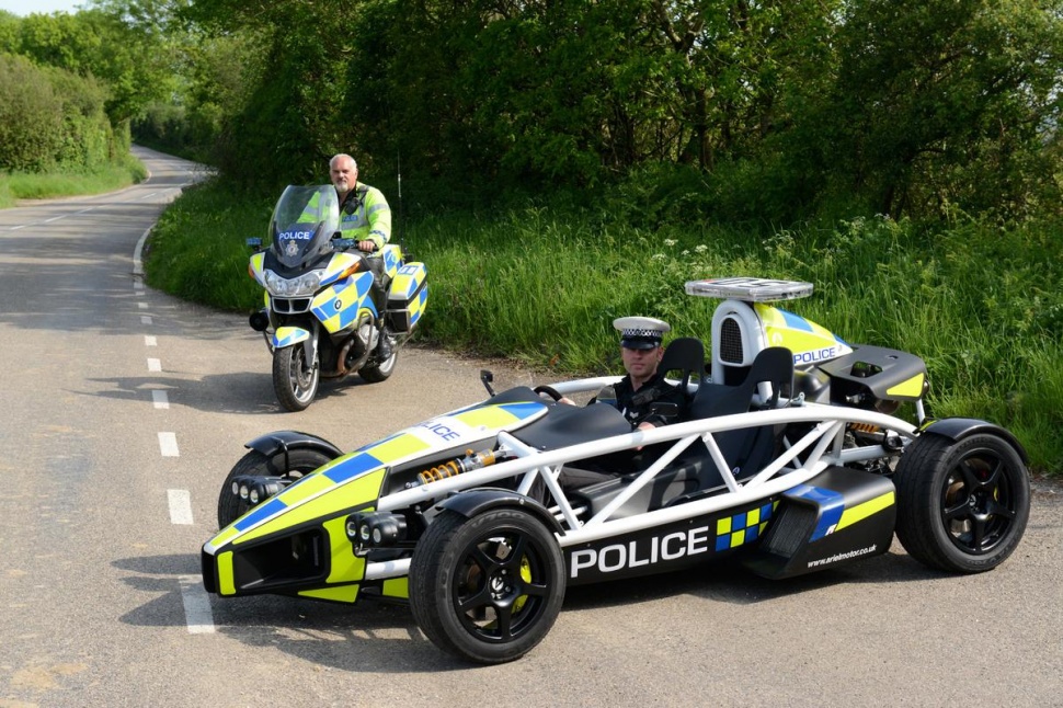 警車 Ariel Atom PL 是基於 Ariel Atom 3.5R 車款,採用 2.0L 四汽缸 Honda 引擎,能夠輸出 350 匹馬力,配合簡單設計和超輕量車身,0 至 60 mph 只需 2.6 秒。雖然 Ariel Atom PL 有能力追截任何超速或犯法車輛,但英國警方只會用於反非法賽車的道路安全宣傳計劃之上。