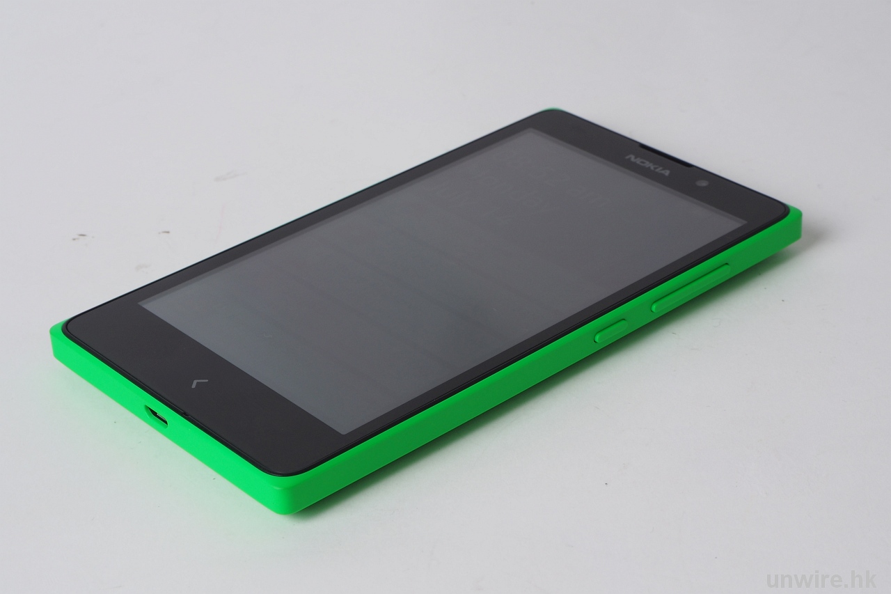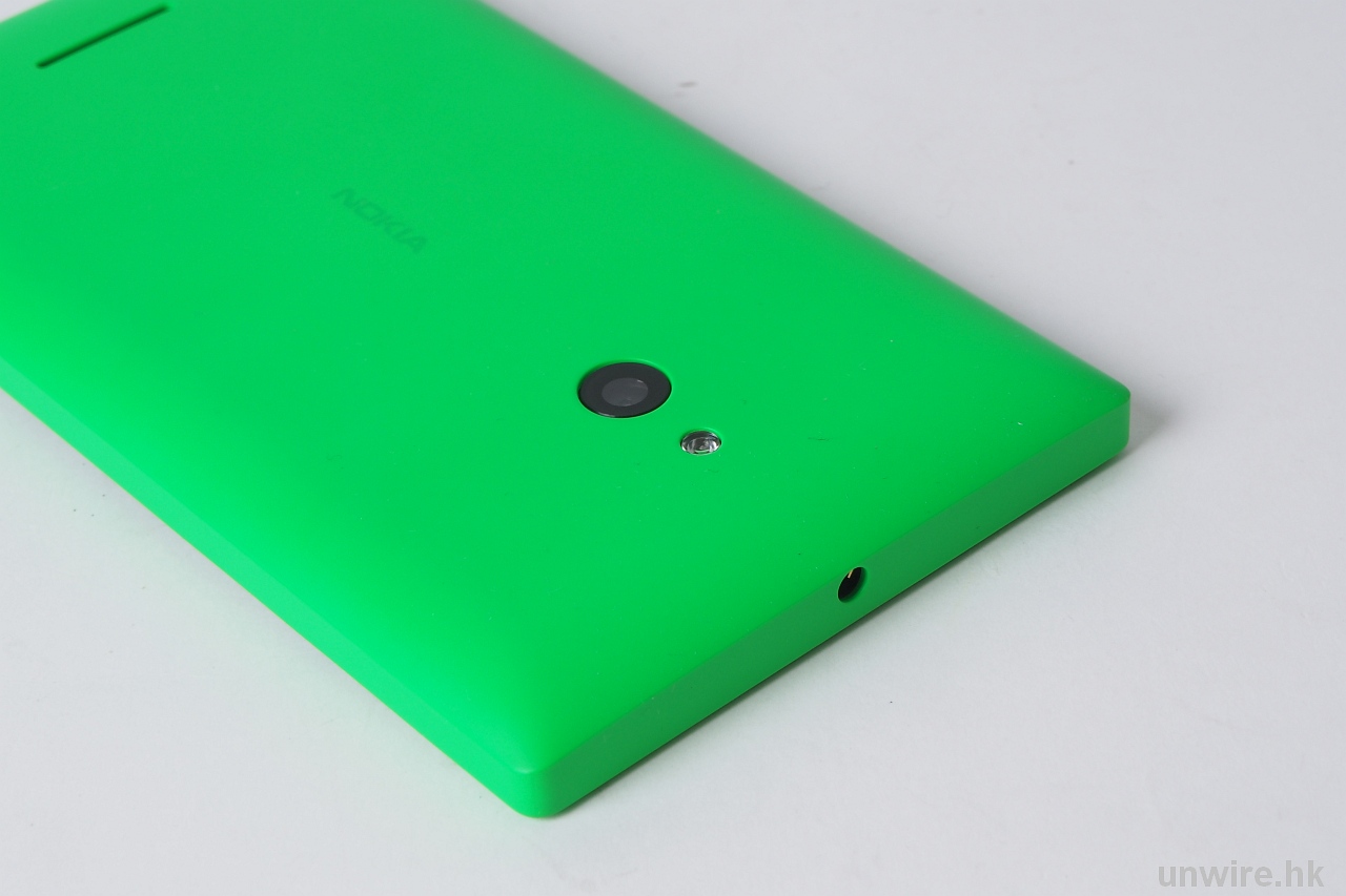 一拿起 Nokia XL 最驚訝不是沒有 Google Play,而是感覺很「玩具」,全因外殼用了滑面硬膠再搭顏色 (綠色),質地好像小時駕駛的「玩具車」,總知感覺就不似手機喇!