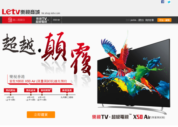 相信有興趣購買樂視 TV 超級智能電視 X50 Air「限量測試版」的 unwire 讀者,應該在這數天已經在樂視官方商城登記及預約了吧!現在登記已經截止,大家只要等待中午 12 時開售,就可以立即鬥快搶購那 100 部 X50 Air「限量測試版」了。想知道如何快人一步搶購成功?以下有更多資訊: