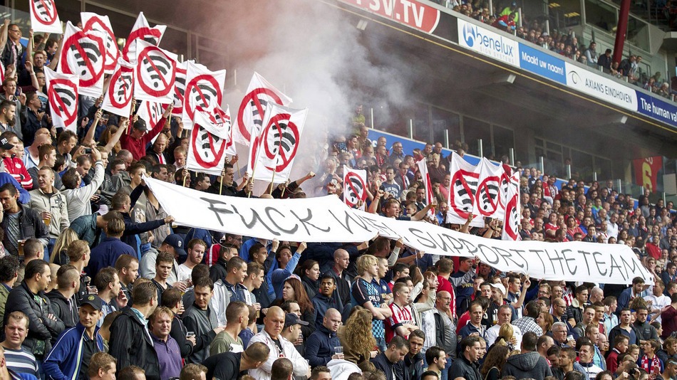 PSV 燕豪芬球迷在開季首場賽事,於主場 Philips Stadion 拉起橫額,抗議球隊決定在球場提供 Wi-Fi 服務。他們舉起「Fuck Wi-Fi, Supprt the team」橫額,認為球迷應該在球場落力支持球隊,而不是玩手機發 Tweet 或更新 Instagram 在球場 hea 兩小時。球迷正在打一場硬仗,因為在球場提供 Wi-Fi 是全球的大趨勢,不少大球會都有類似服務。