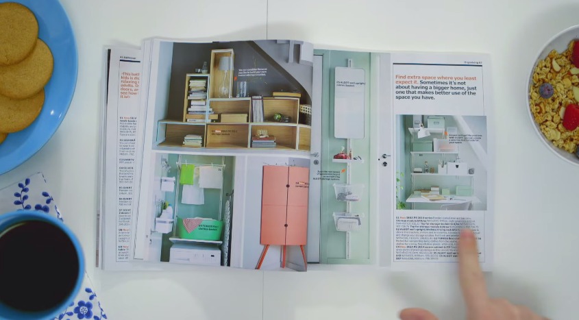 那個模仿 Apple 設計部門總裁 Jonny Ive 的演員,扮演 IKEA 首席設計師,連聲音語調都學到足。他介紹了 IKEA 2015 產品目錄採用無線設計,擁有永恆的電池壽命、介面為 7.5 x 8 吋,但可以放大至 15 吋。而且有手勢和語音操控,內容亦是預載,更沒有任何卡頓的問題。