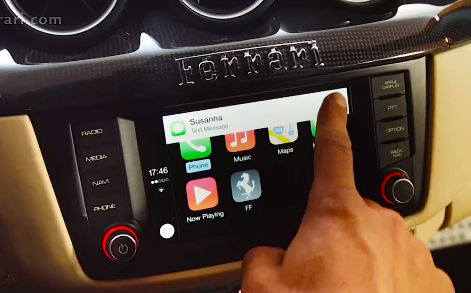 法拉利日前宣布首部擁有 CarPlay 系統的 Ferrari FF 正式付運,而稍後另一部 V8 Turbo 引擎的 California T 亦會配備 CarPlay,並且在歐美多國和日本推出。CarPlay 被 Apple 視作汽車中的 iOS,將 iPhone 和汽車 CarPlay 系統無線連接後,車主就可以在面板操控電話、地圖、信息和音樂功能。