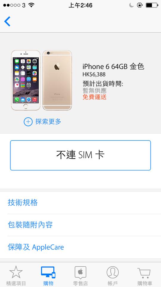 - 不斷連按「不連 SIM 卡」刷新,預計開始後如果你成功搶到就會看到有存貨,並出現進一步的購買提示