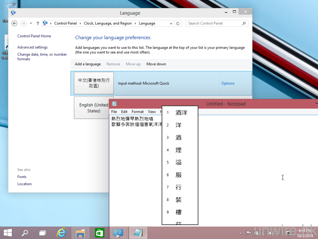 ▲與 Windows 8 一樣,於 Control Panel 的 Language,可 Add A Language 簡單的加入中文及中文輸入法。