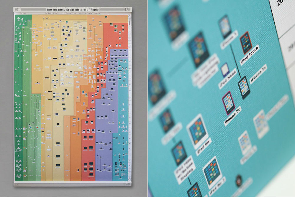 早前推出,由 Pop Chart Lab 設計的 The Insanely Great History of Apple 3.0 海報,包括了最新的 iPad Air 2、5K 顯示屏 iMac、iPhone 6 和明年才發售的 Apple Watch。超過 500 件 Apple 推出的產品全部分門別類,再按推出年期排序。海報體積為 28 x 42 吋,適合蘋果迷放在家中或辦公室展示。這海報一如其他 Apple 產品般昂貴,售價高達 80 美元(約 620 港元)。