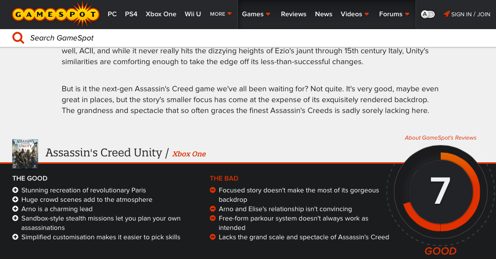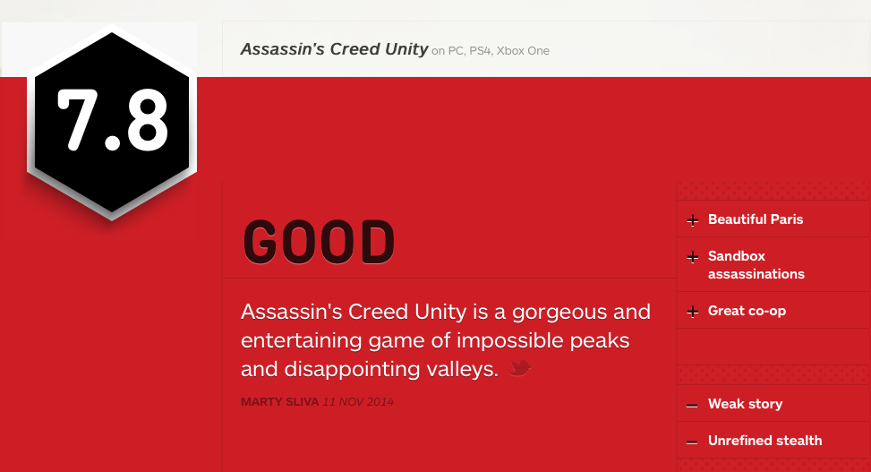 http://www.polygon.com/2014/11/11/7192467/assassins-creed-unity-review-xbox-one-PS4-PC